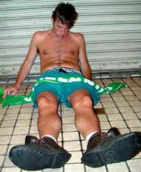 absolute nil experience of anything like this. A rather attractive girl who ‘knows it’ makes the most of the laws of supply and demand; there are very few females on the train. She skilfully fends off the attention of the hoards of intoxicated young men, partners thousands of miles away. She looks at me quizzically and asks do I speak Spanish. I reply “no comprendo”, which she doesn’t believe and speaks at some length to me in Spanish. I shrug my shoulders and smile; I think I may have said about the only other words of Spanish I know: Hermosa... Bonita… Guapa... Cerverza… She gets the jist and moves on.