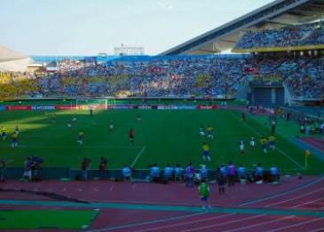 The Miyagi Stadium, even though modern, is probably one of the poorest of these championships. It is located in the middle of nowhere, a good 20-minute bus journey from Sendai. I only have to assume that there isn’t much rainfall or strong sunshine in this part of Japan, as there is virtually no roof. The stadium resembles an open bucket and the pitch is surrounded by a running track. Not the best for atmosphere. |